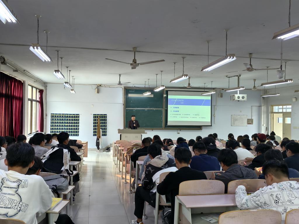 安全防范环节则涵盖多个维度。针对新生初入校园可能面临的安全隐患,副书记详细讲解了宿舍安全(包括用电安全、消防安全等)、出行安全(交通安全、防溺水安全等)、财产安全(防范电信诈骗、网络刷单诈骗等)、人身安全(防校园欺凌、交友安全等)以及实验室安全等内容。其中,对于化学化工学院新生尤为重要的实验室安全,副书记特别强调了实验操作规程、危险化学品使用与管理等要点,提醒新生务必严格遵守实验室规章制度,杜绝违规操作,确保实验安全。