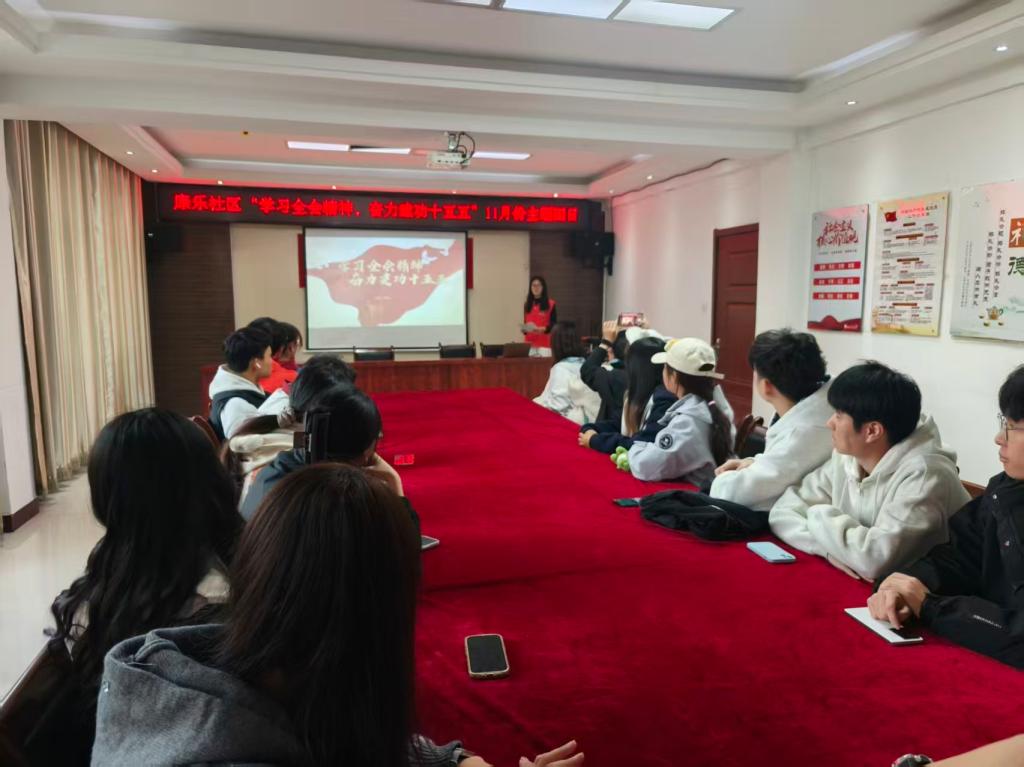 为深入学习宣传贯彻党的二十届四中全会审议通过的《中共中央关于制定国民经济和社会发展第十五个五年规划的建议》精神,引导广大团员青年准确把握“十五五”时期国家发展的战略部署与历史使命,11月14日,化学化工学院赴康乐社区,开展“学习全会精神,奋力建功‘十五五’”主题团课宣讲与交流学习活动。活动由学院团员代表李秋怡同学主讲,康乐社区青年共同参与。