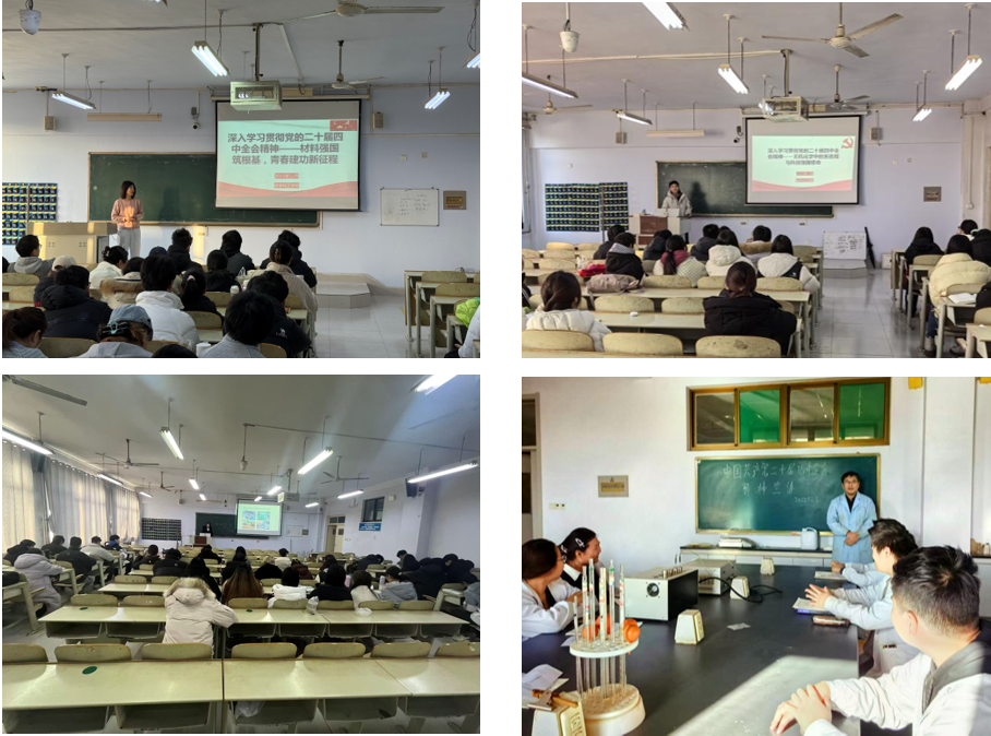 为深入学习贯彻党的二十届四中全会精神,推动全会精神融入专业教育、走进学生课堂,近日,化学化工学院各教师党支部书记结合学科特色,面向不同专业学生开展系列课程思政宣讲,引导学生把握时代坐标、明确专业使命、践行青春担当。