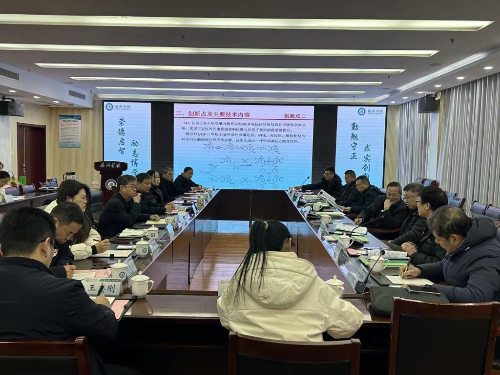 1月11日,由化学化工学院牵头完成“基于产业基础技术创新的高端有机颜料关键技术与规模绿色产业化”成果评价会在学校召开,评价委员会由山东大学张长桥教授、中国染料工业协会会长史献平教授级高工、大连理工大学唐炳涛教授、青岛科技大学冯维春教授、山东师范大学崔官伟教授5位专家组成,成果共同完成单位天津大学和山东世纪阳光科技有限公司、宇虹颜料股份有限公司、上海连泓新材料科技有限公司的项目负责人参加会议,德州学院党委委员、副校长李甲亮出席会议。