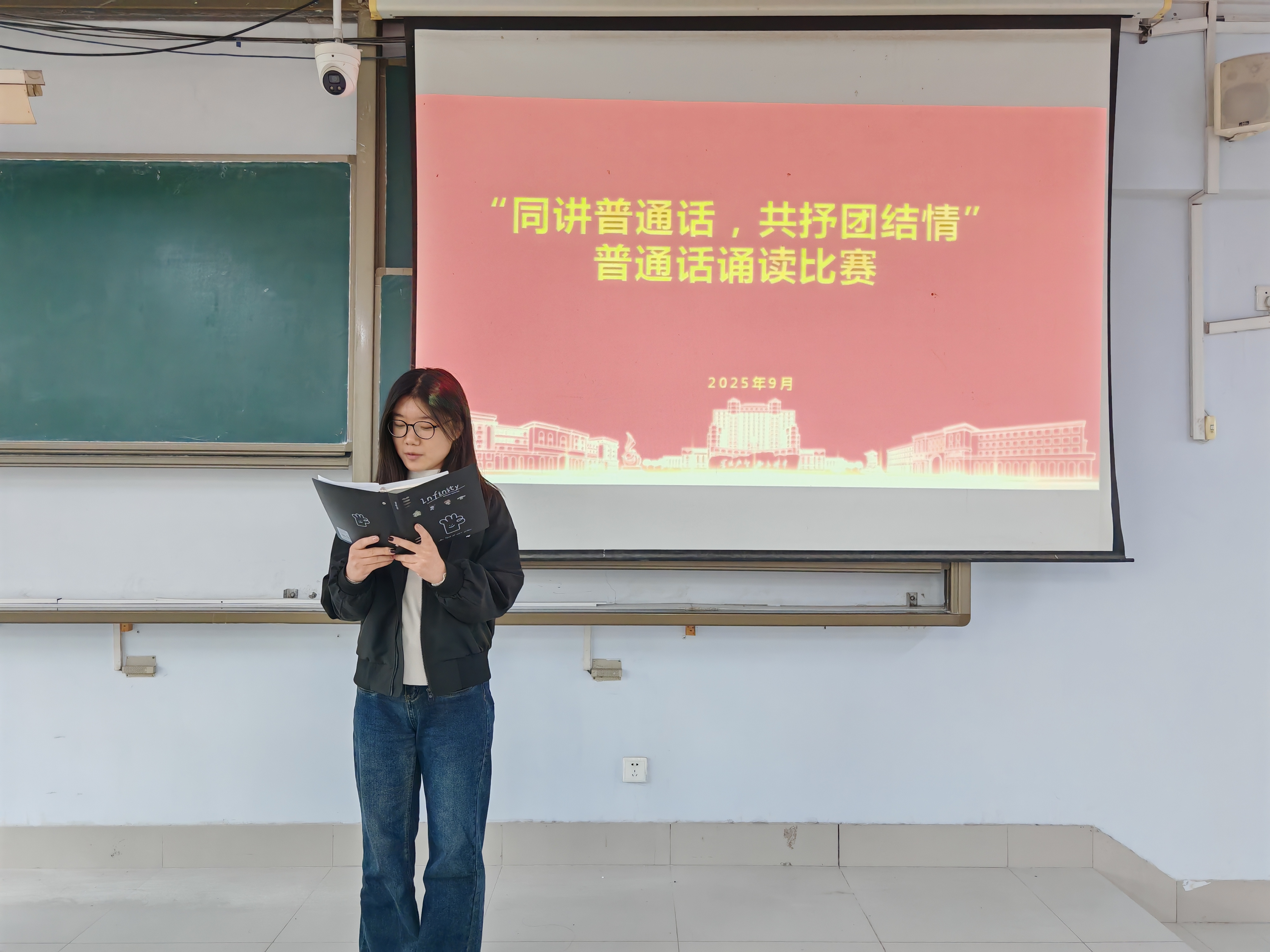 活动启动后,学院学子积极响应、踊跃参与,同学们紧扣“普通话+民族团结”主题,以清晰流畅的普通话为表达载体:有的以家乡非遗文化、传统习俗为切入点,用标准发音讲述家乡与祖国同发展的故事,让“祖国在身边”的情感更具温度;有的朗诵《民族团结赋》等经典篇目,通过齐整的语调、真挚的情感,传递“各民族像石榴籽一样紧紧抱在一起”的信念。创作过程中,同学们不仅注重普通话发音的规范性,更在内容设计上融入青春视角,让“讲普通话”与 “抒团结情”深度融合,彰显了当代大学生的表达特色。