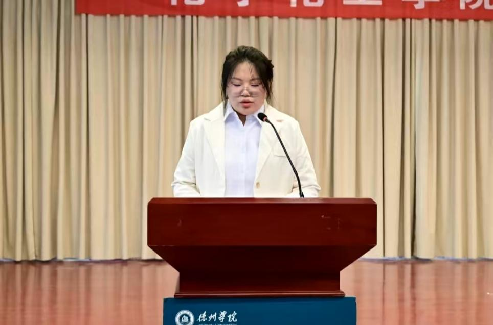 新生代表表达了初入大学的感受与憧憬,倡议全体2025级新生要坚定理想信念,要涵养品德修养,要勤奋学习知识,逐渐成长为兼具扎实学识与综合能力的德院人。