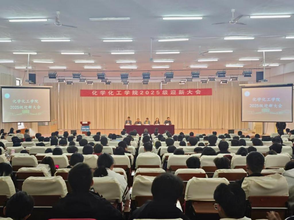 10月28号下午,化学化工学院在求实楼409报告厅举办2025级迎新大会。学院领导班子成员、班主任代表、全体辅导员、2025级全体研究生及本科新生参加。大会由学院党委副书记主持。