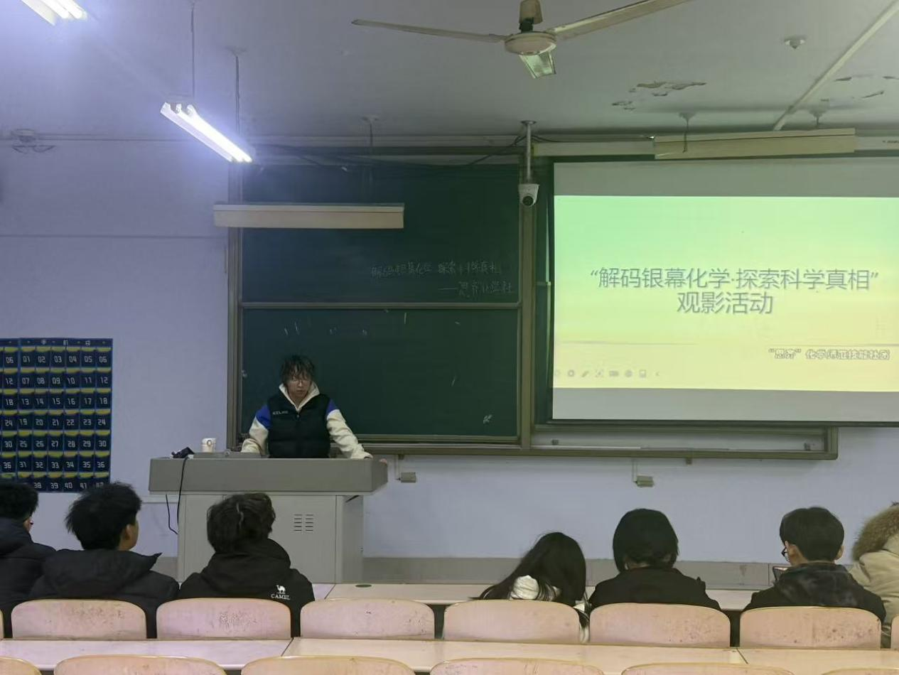 为识别影视中常见的化学误区,向学生普及化学常识与实验室安全规范,激发学生对化学学科的兴趣,展现化学与生活、影视的深度关联,化学化工学院“思齐”化学师范技能社团于12月2日在求实楼410教室举办了“解码化学:探索科学真相”观影活动,“思齐”化学师范技能社团全体成员参加活动。