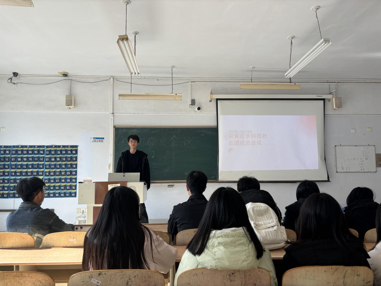为进一步明确社团工作方向,规范社团运行管理,全面提升社团活动质量与育人实效,化学化工学院砹铌化学科技社于12月,在求实楼0413教室有序开展四期社团会议,会议30余人参加。